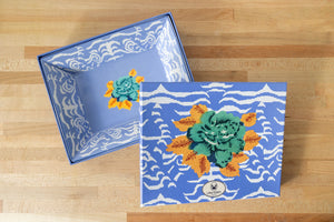 Vessels of storytelling and artistry, the new trays, plates and porcelain trinket boxes blend utility with decorative charm. They complement Lisa Corti’s porcelain, textiles, and glassware for a layered, maximalist, yet sophisticated tablescape.